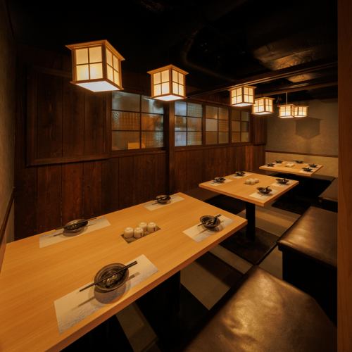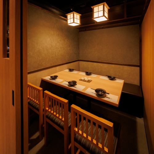 “和のくつろぎ”を感じさせる4名様向け個室。扉付きでしっかりとプライベート感があり、周囲の気配を感じさせない静かな空間。飲み会はもちろん、記念日や接待など大切なシーンにも最適です。